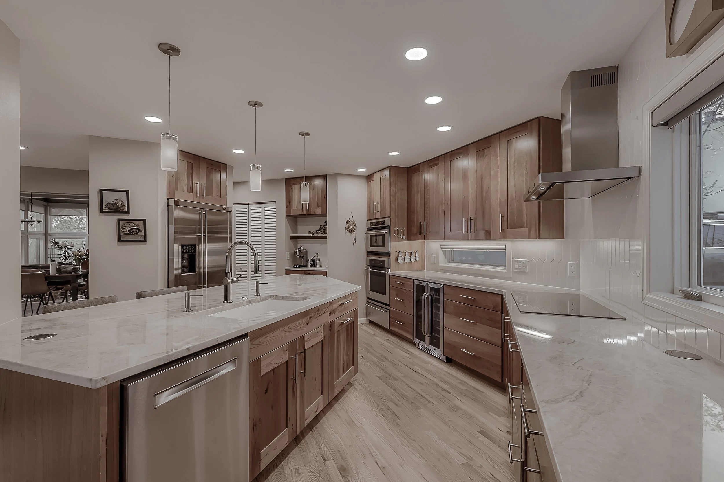 A key sustainable aspect of the remodel was the reuse of all existing appliances, except the cooktop/hood. Any new cabinets were custom-crafted to match the existing, allowing for integration while reusing the original cabinetry. This thoughtful approach not only reduced material consumption but also maintained the home's character.